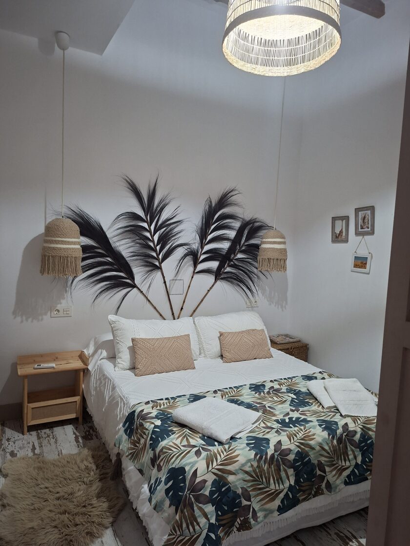 Aztán megérkeztünk Moral de Calatrava külső részéhez, és ahogy haladtunk befelé a központ felé, szinte csak leeresztett redőnyös házakat, lakásokat láttam. Kissé kísértetiesnek tűnt az egész. Aztán ahogy egyre inkább közelebb kerültünk a központhoz, már felbukkant néhány ember is az utcákon. A GPS-em jelzett, hogy megérkeztem, de ott nem tudtam megállni, úgyhogy tovább hajtottam és úgy 70-80 méterre találtam egy nyilvános, ingyenes parkolót, ahol még hely is volt. Szakadt az eső, de muszáj volt kiszállni. Vállamon a táskám, nyakamban az övtáskám, a kutyák póráza az egyik kezemben. Kabát csuklyája fel és irány a szállás. Könnyen megtaláltam, a szállásadó férfi széles mosollyal kint várt a kapuban. Nem zavarta, hogy két ázott négylábúval érkezem, neki is van két kutyája. Ezt intenzív pantomimmal magyarázta el, mert a „Hello”-n kívül több szót nem ismert angolul. Annyit kínlódott, hogy a telefonján megtalálja a mikrofonos fordító programot, hogy lányos zavarában csinált vagy hatvan képernyőfelvételt. Ez így nem lesz jó. Mondtam neki vagyis inkább elmutogattam neki, hogy nyugodjon meg. Beizzítottam a DeepL.com fordító programot és pikkpakk szót értettünk. Nagyon kedves volt egyébként. Szuper szállásom volt, külön nappali, kis fedett udvar, külön hálószoba, külön fürdő. És nagyon jó áron, bent a kihalt város közepén. Tavasztól-őszig biztos nagy a pezsgés itt, de most kicsit para volt. Az autóval 20 percig megállhattam a bejáratnál, úgyhogy a kipakolás hamar megvolt. Aztán visszavittem a kocsit a parkolóba, még mindig ott volt a hely, csak rám várt. Letakartam mindent, bezártam az autót és visszasétáltam a szállásra. Kutyusok nagy örömmel csóváltak, hogy „Visszajött! VISSZAJÖTT!!!” Mindig visszamegyek. Értetek, hozzátok bármikor, bárhová.