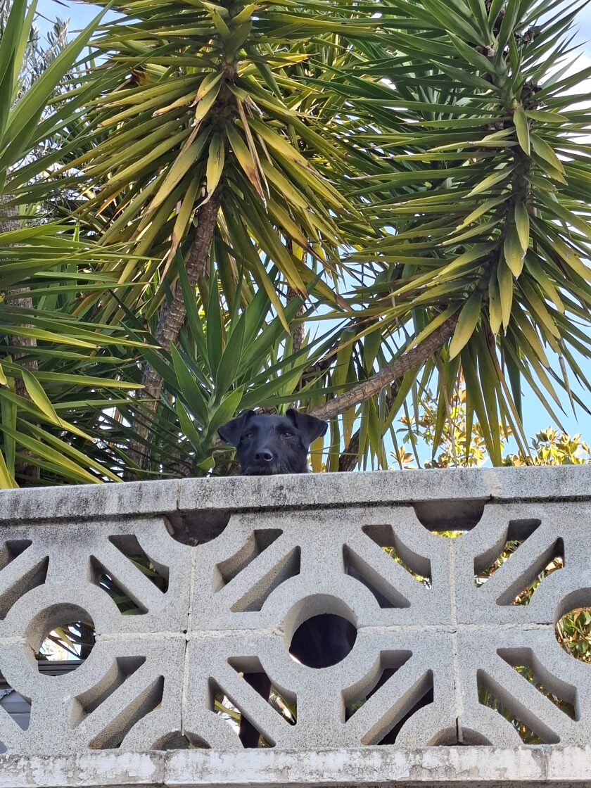 Reggeli után levittem a kocsihoz a csomagokat. Egyedül voltam az utcán, mégis úgy éreztem, hogy valaki figyel. Körbenéztem és fekete, szőrős füleket, barna, kíváncsi szemeket láttam a kerítés mögött. Nem a kapunál, hanem fent a meredek belső udvar mellvédjénél: Zserbo. Hát persze! Ki más?