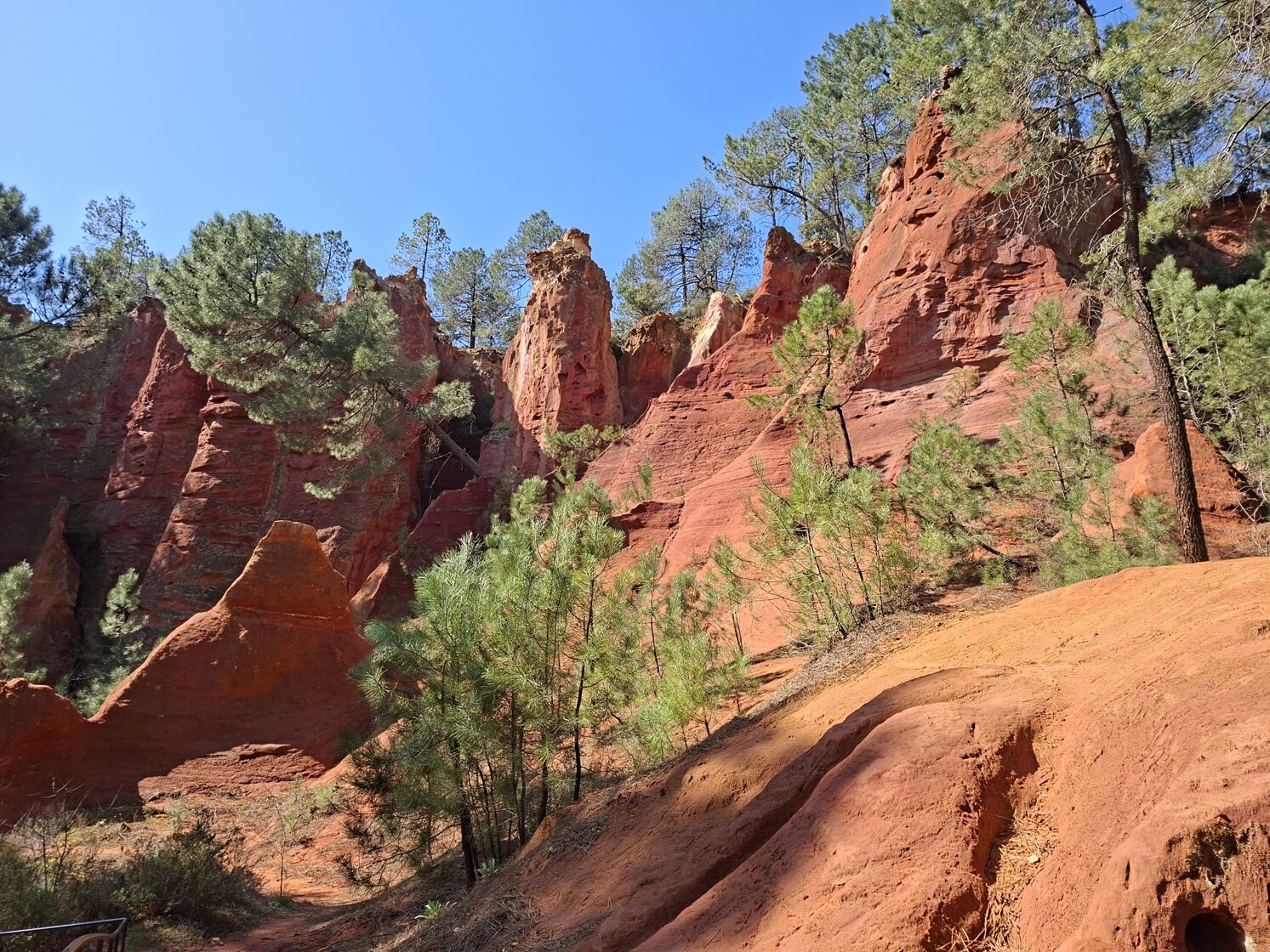 A jegy bőven megérte az árát (3.50 euró). Micsoda színek! A halványsárgától a vibráló sárgán át a narancs- és sötétvörösig. Micsoda formák! Mintha óriási kémények lettek volna egy mesében, vagy alulról növő cseppkövek a szabadban. Lenyűgöző látvány volt és velünk együtt még elég sokan kíváncsiak voltak rájuk. Érdekes információkat is megtudtunk, például azt, hogy az okker a tenger és a talaj szoros kapcsolatából születik.