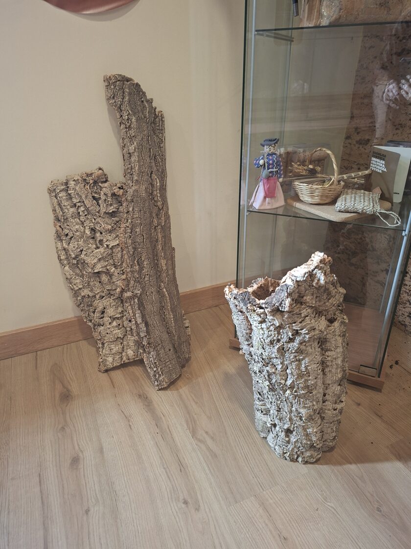 Kis tekergés és kanyarok százai után megérkeztünk úti célunkhoz. Ma már nem volt idegenvezetés, de levetítettek nekünk egy filmet arról, hogyan is szedik le a kérget a fákról, hogy egyenesítik ki, hogyan dolgozzák fel. Lenyűgöző! És mennyi mindent lehet belőle készíteni! Természetesen nem tudtam megállni, hogy ne vegyek egy táskát, amit keresztben a vállamon, de elöl kell hordani, így még szemmel is tarthatom. Vízálló, könnyű, csinos és támogatom a portugál gazdaságot. Meg egy szemüvegtartó tokot, mert a régit véletlenül kidobtam, amikor pakoltam a házat.