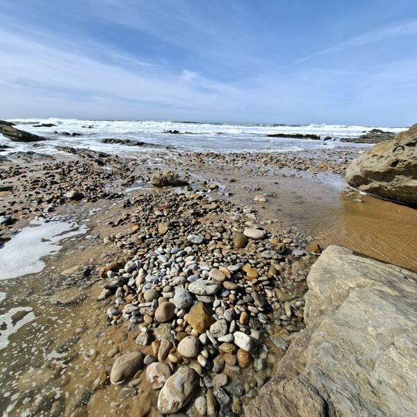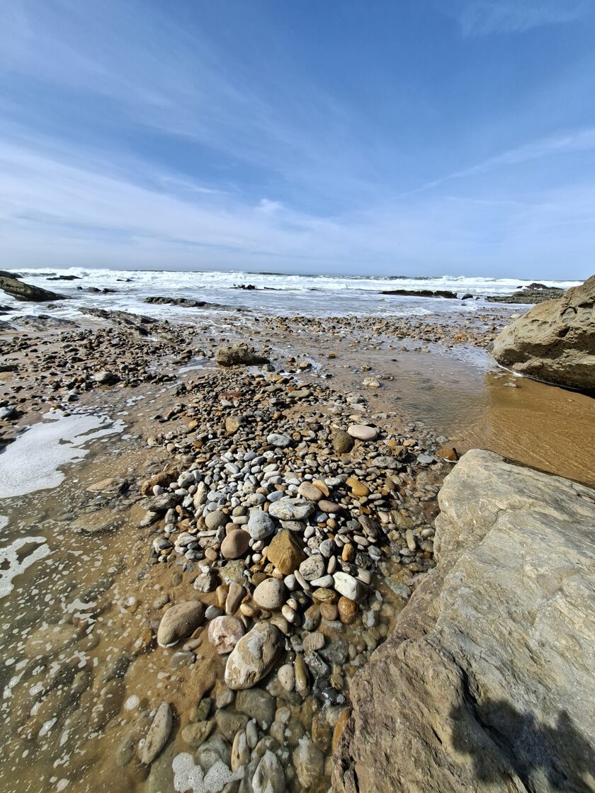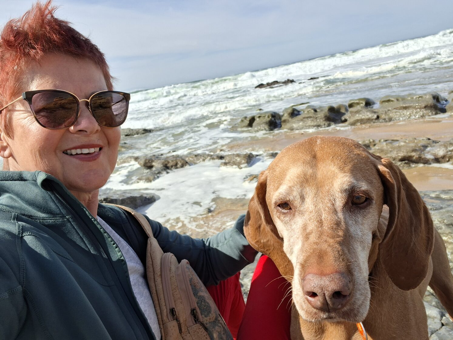 Én leültem a vízparton egy sziklára, Panka mellettem, Zserbo szaladgált egy hasonló méretű kutyával. Csodáltos érzés ott ülni, nézni és hallgatni az óceánt. Az a hatalmas őserő, ami robajlik benne, a folyamatosan a partot csapkodó hullámok, melyek alakítják, faragják a tájat. A színek: a vízé, a hullámok tarajáé, a gömbölyűre mosott kavicsoké, a hol sötét, hol világos szikláké, a kék égé.