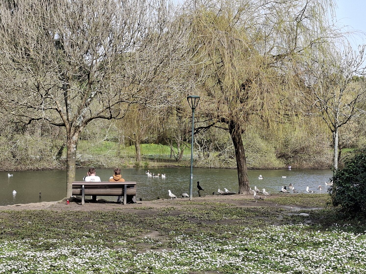 With full bellies and in good spirits we walked back to the car with Gerbeaud on the leash. On the way to the big city park I filled up the car. Parque da Cidade do Porto is a wonderful park full of lakes, birds, big green clearings filled with flowers, and foresty parts, and the weather was great for a long walk. Gerbeaud strictly on a leash, because the freely roaming roosters, guinea fowls, and geese really excited him. And one disappearance in a day is more than enough. I really liked this park; it reminded me of the one in Brussels where Kata has taken me several times to walk and cycle.
