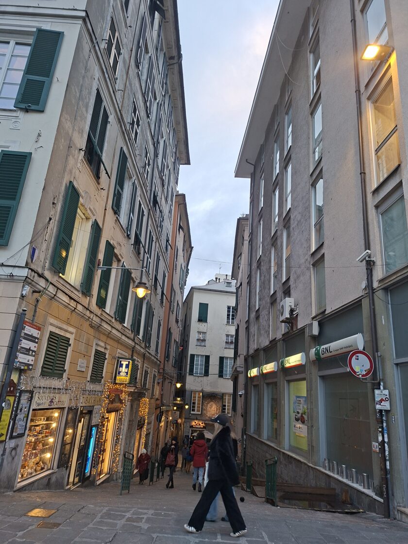 Genoa is a truly bustling city; Gerbeaud wants to sniff everything, but REALLY EVERYTHING — I love his curiosity. People are kind; they let their dogs come over so mine can sniff them. The vibes are good.