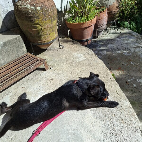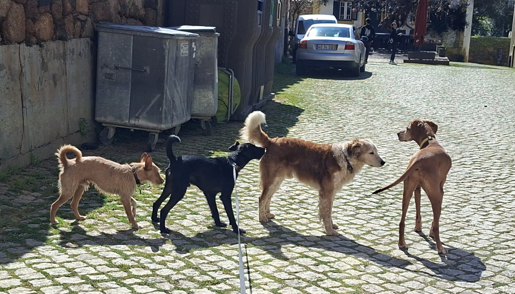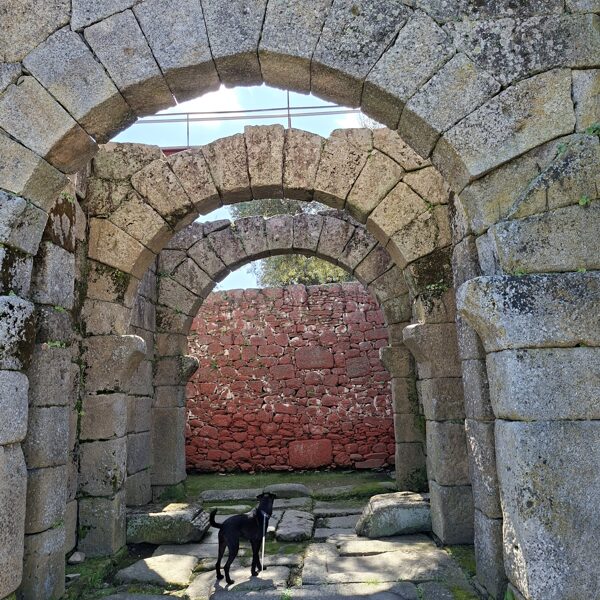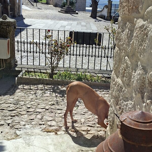 The plan was to go on an excursion to the castle of Idanha-a-Vida, which is 12 kilometers from us, twenty minutes by car. This region is very beautiful and soothing, but the bends urge the driver to stay alert. We arrived; I parked well below the castle so the dogs would have enough time to do their business and move around a bit too.