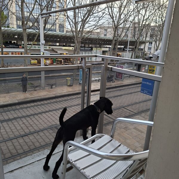Nun, es war ein langer Tag – wir sind in viele Wolkenbrüche und Schneeregen geraten, aber wir haben die Aufgabe des Tages geschafft. Hier in Montpellier bin ich ziemlich viel herumgefahren, bevor ich die Unterkunft gefunden habe, weil ich daran vorbeigefahren bin und es hier jede Menge Einbahnstraßen gibt, aber zusammen mit dem GPS haben wir es schließlich geschafft. Ich habe in der Tiefgarage geparkt und dann die Hunde für eine schnelle Pipi-Kacki-Runde rausgebracht. Sie waren die ganze Zeit so, so geduldig – kein Mucks – während ich immer wieder im Kreis gefahren bin. Habe ich schon gesagt, dass ich sie liebe und verrückt nach ihnen bin?