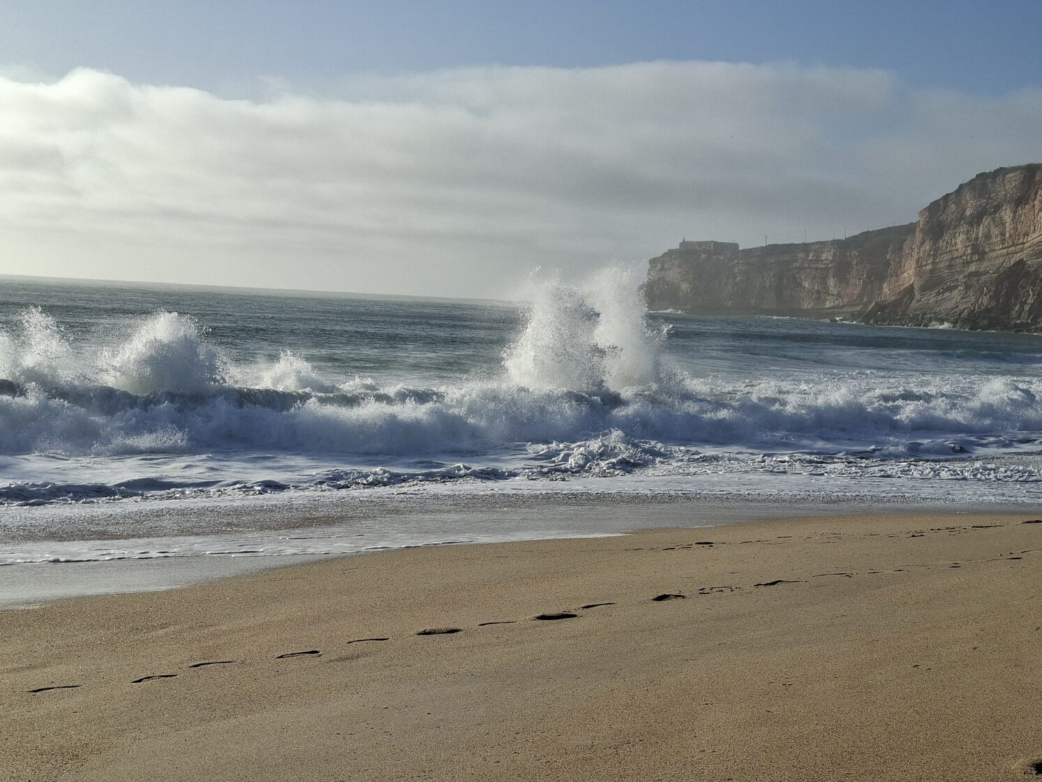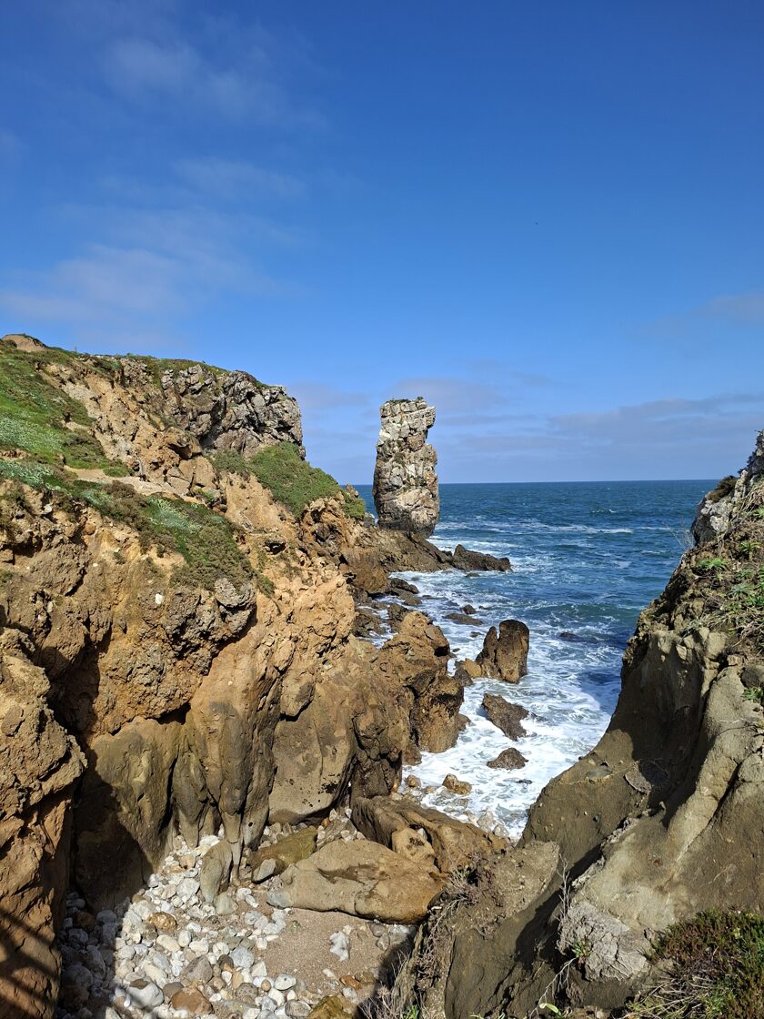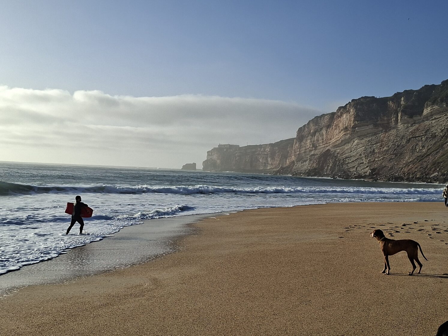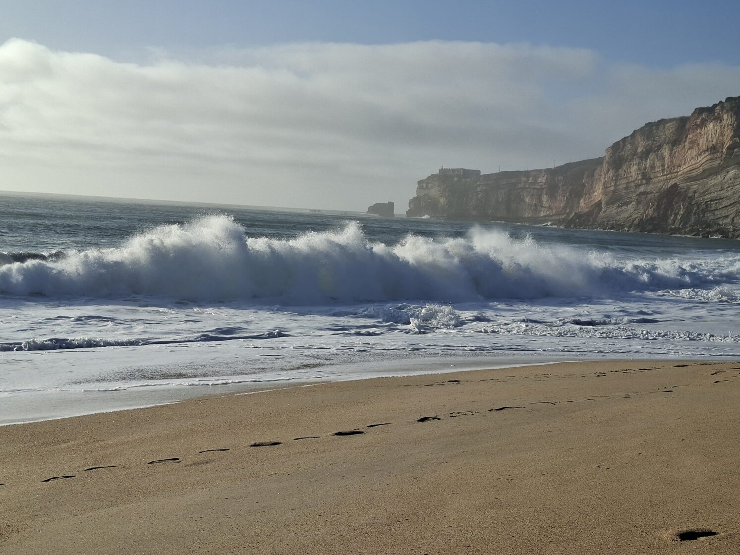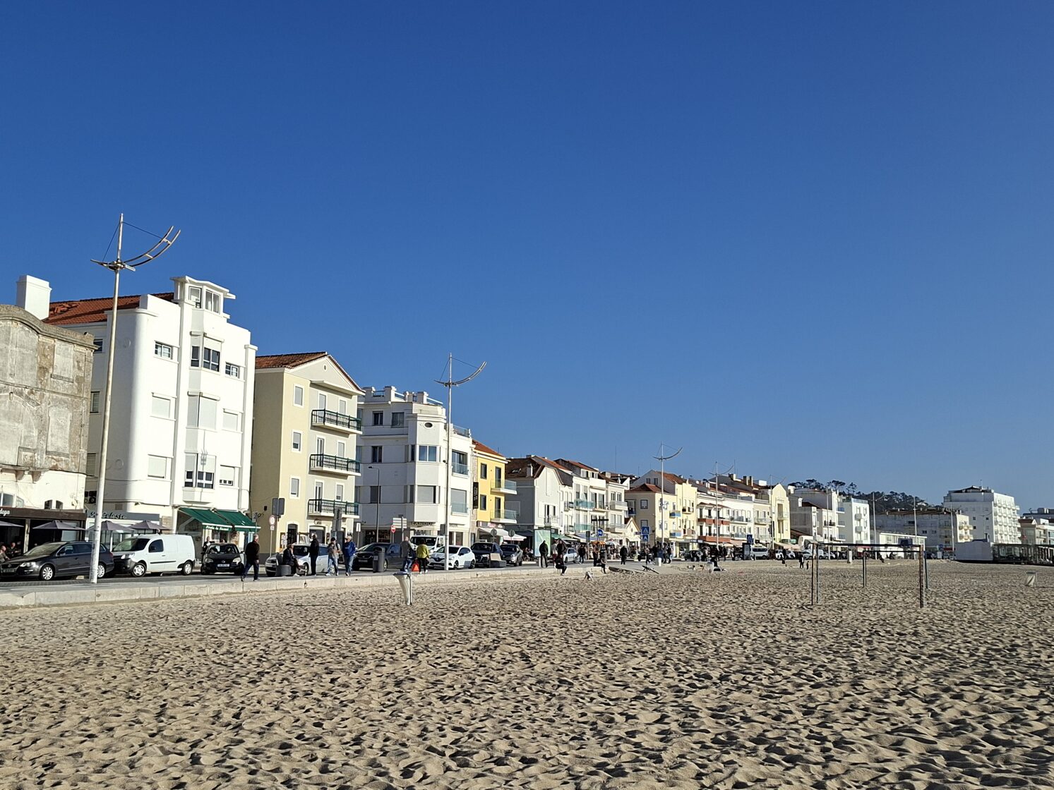 Dann setzten wir unsere Reise nach Nazaré fort, das für seine riesigen Wellen bekannt ist. Zunächst hatte ich Schwierigkeiten, unsere Unterkunft in diesem Labyrinth zu finden. Schließlich musste ich dem Besitzer eine Nachricht schicken, dass wir schon eine Weile herumgefahren waren. Das Navi bestätigte, dass wir angekommen waren, aber ich konnte das Haus einfach nicht finden, was keine Überraschung war, da die Hausnummerierung sehr seltsam war. Glücklicherweise kam er schnell vorbei. Der Ort sah aus wie ein Feriengebiet, voller Häuser, nirgendwo Gras (arme Panka!), alles mit Steinen gepflastert. Die meisten Fensterläden waren geschlossen, da die Saison noch nicht begonnen hatte. Unsere Unterkunft sah aus, als hätte der Mann seine Garage in eine Wohnung für seine Großmutter umgebaut. Es gab nur ein Fenster in der Küche, und das Badezimmer war nur ein Loch. Die einzige gute Nachricht war, dass es eine Waschmaschine und einen Trockner gab. Die habe ich natürlich ausgiebig genutzt.