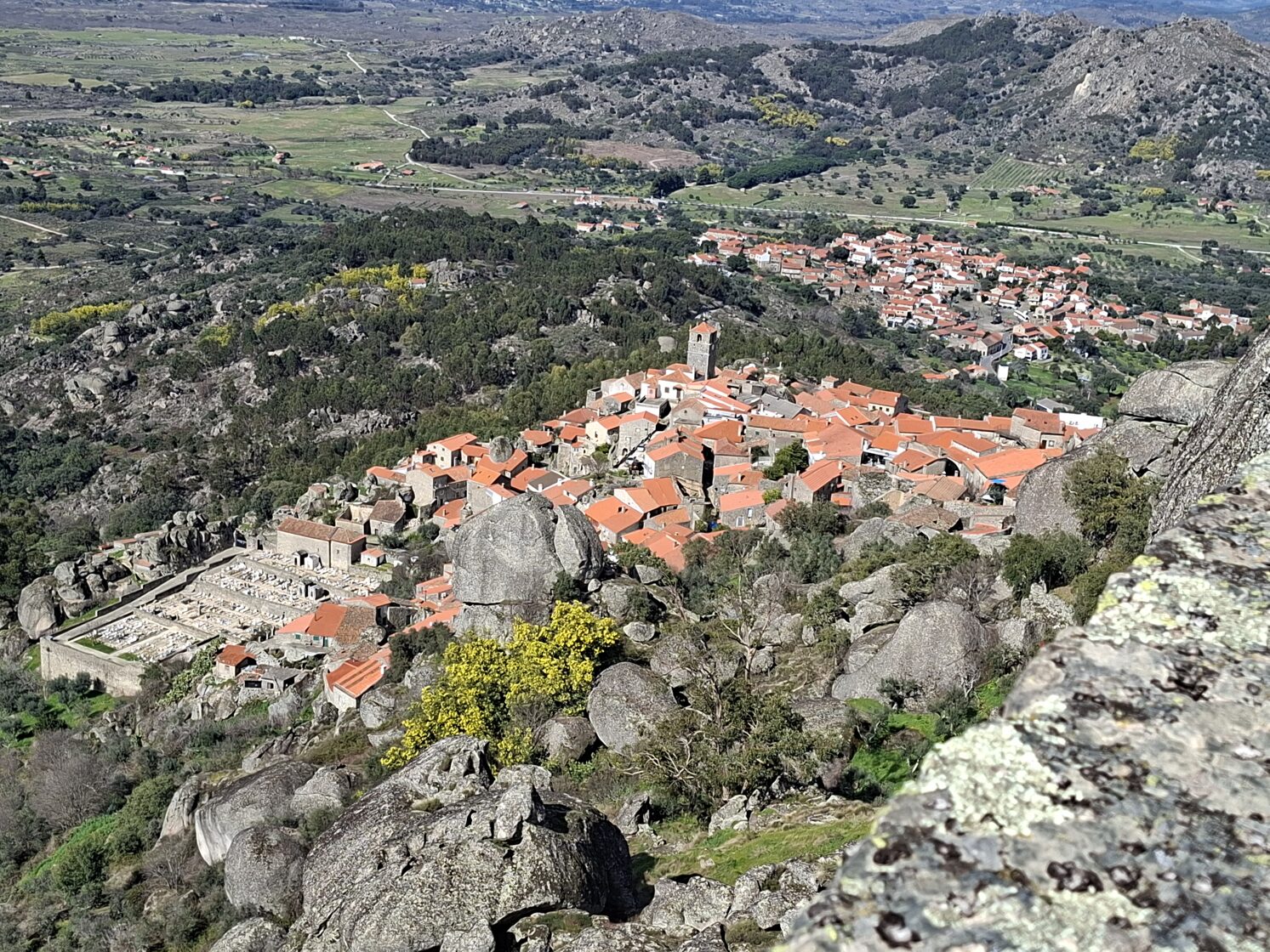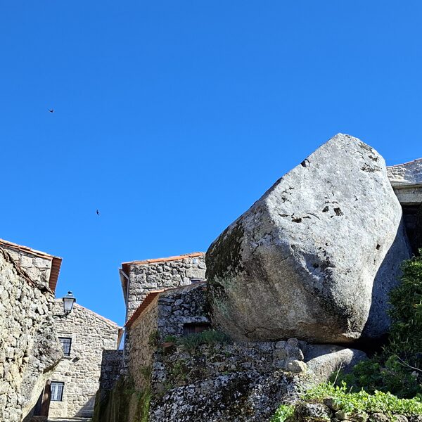 Das heutige Ziel war Monsanto. Dieses Dorf ist berühmt dafür, dass es 1938 den Titel des portugiesischsten Dorfes gewonnen hat, weil es den Charakter der traditionellen Beira-Dörfer bewahrt hat. Ein weiterer Grund für seine Berühmtheit ist, dass die mittelalterlichen Steinhäuser zwischen, unter und auf riesigen Granitfelsen gebaut wurden. Die einzigartige Siedlung auf einem Hügel mit 500 Millionen Jahre alten Fossilien und einer beeindruckenden Burg war auch Drehort für die Game of Thrones-Prequel-Serie House of the Dragon (Haus der Drachen). Mehrere Häuser, wie beispielsweise Casa de Uma Só Telha, wurden unter einem einzigen massiven Felsen erbaut. Dieses Dorf verbindet eine mittelalterliche Atmosphäre mit einer dramatischen Naturlandschaft und ist damit eines der außergewöhnlichsten Reiseziele in Zentralportugal. Ich bin sehr froh, dass mir dieser Film über Portugal auf YouTube aufgefallen ist. Dort bin ich zum ersten Mal auf den Namen Monsanto gestoßen und wusste, dass ich hierherkommen musste.