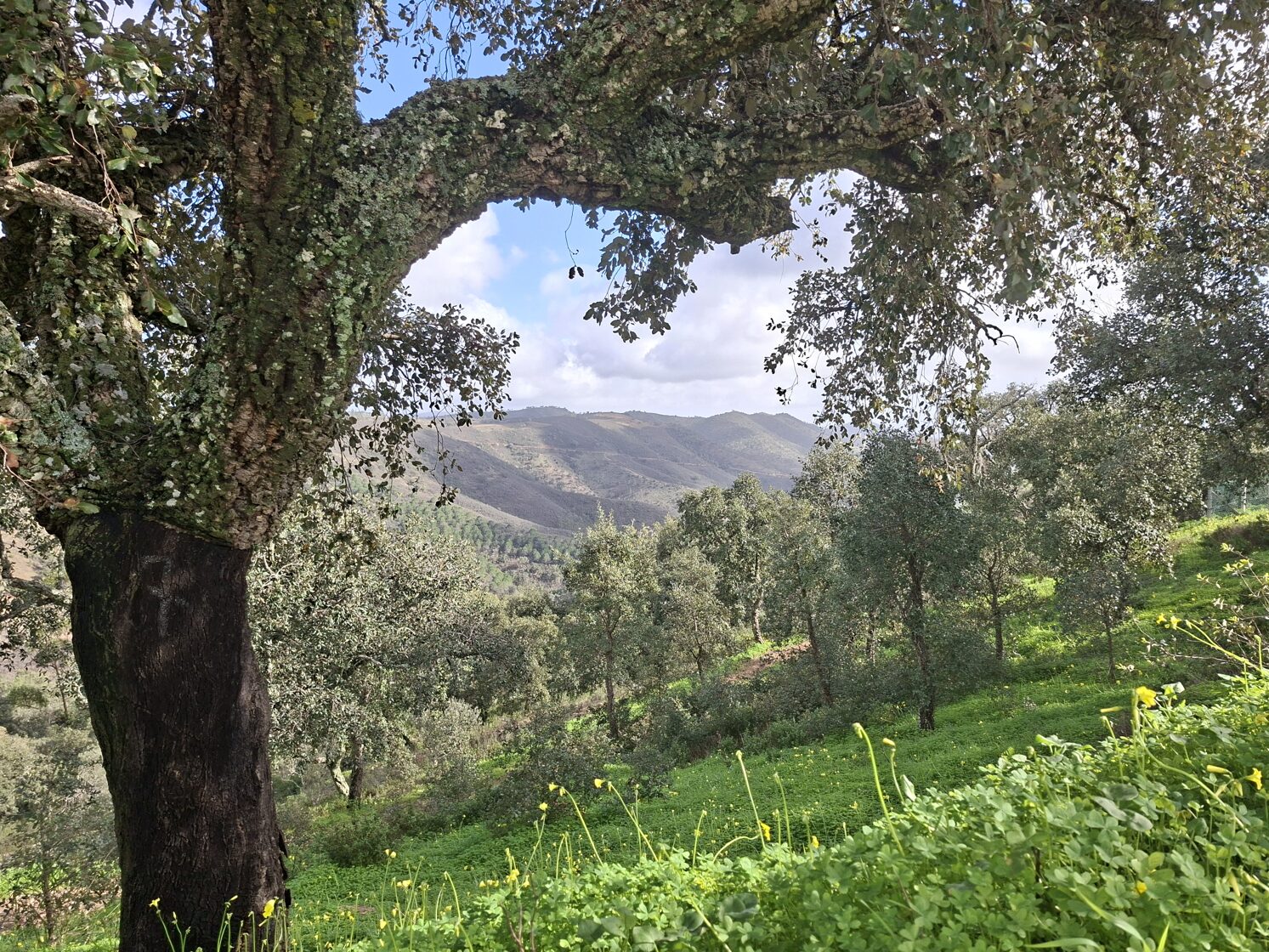 Wir fuhren in die gleiche Richtung wie gestern; unser Ziel war eine Korkfabrik auf dem Land. Wir hielten mehrmals an, um Fotos zu machen; wir genossen den Anblick der vielen Störche auf den Strommasten und in den nassen Auen sehr. Die Sonne schien wunderschön. Wir hielten auch an einem Markt; wir kauften sehr leckeres Gebäck, Mangos, Kartoffeln, Oliven, geräucherte Wurst (nächste Woche, an unserem letzten Abend, mache ich Schichtkartoffeln als Abschiedsessen).